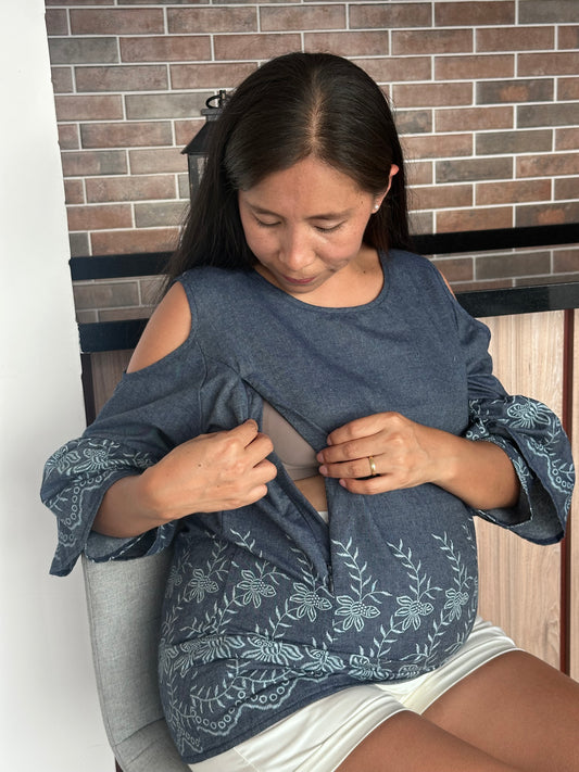 Blusa broderie herbal