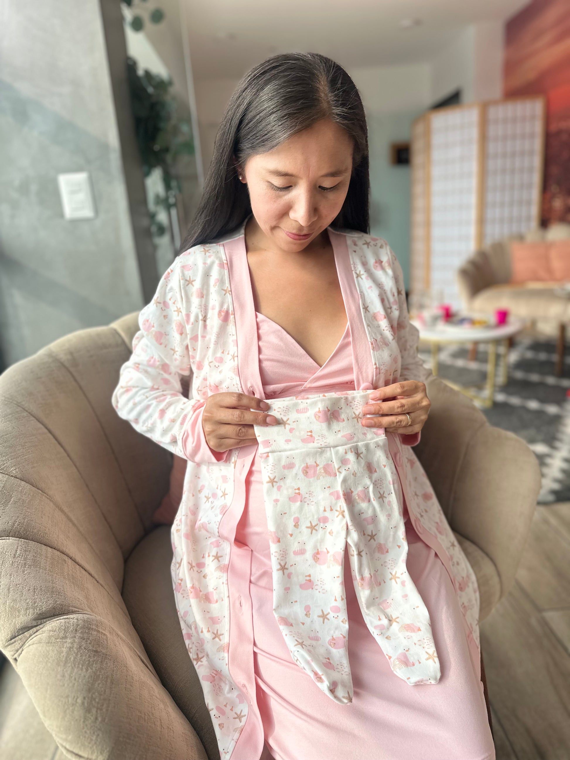 Bata de botones + camisón + set bb