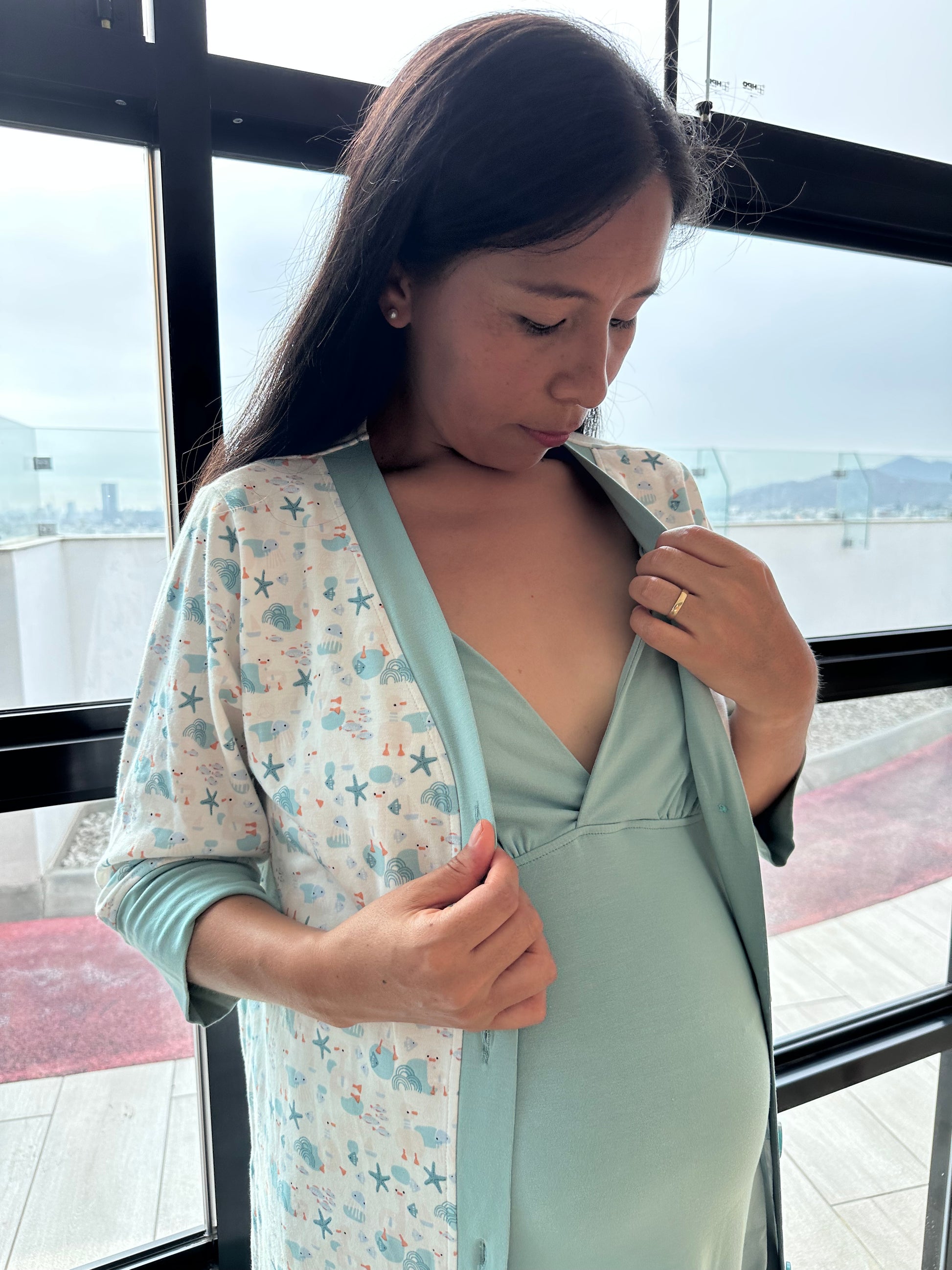 La mayoría de prendas de Momba están elaboradas en telas strech que se amoldan tanto al embarazo como en la etapa de lactancia . Te daremos todas las medidas posibles de cada prenda . Medimos el largo desde el punto más alto de las prendas hasta el final , también especificaremos el lado más largo y más corto de la prenda . La cintura se medirá de extremo a extremo desde la costura . En caso de tener zonas elásticas éstas se medirán sueltas , no estiradas . El pecho se medirá debajo de la sisa en la parte más ancha . La cadera se medirá también en la parte más ancha de ésta . En el caso de los pantalones y shorts mediremos el tiro y el largo a partir del tiro .