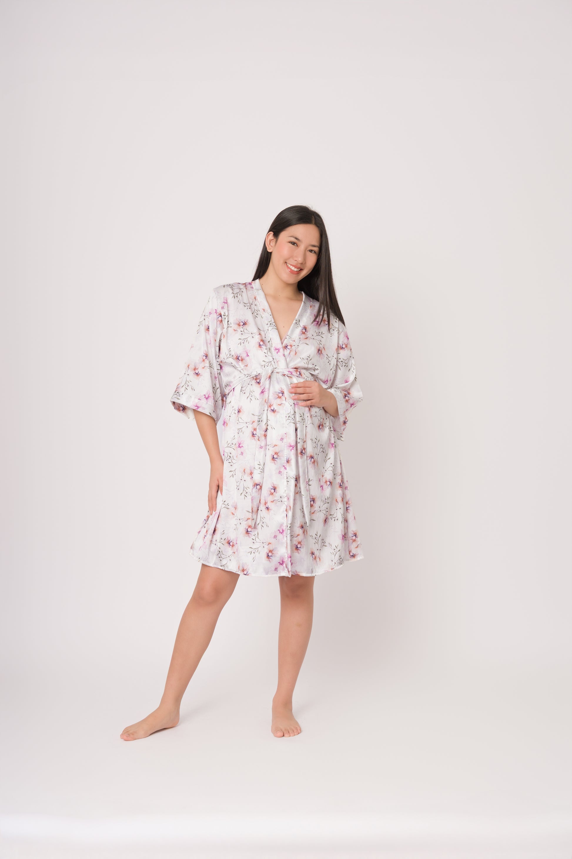 2 piezas ( capa seda satín + camisón de algodón viscosa