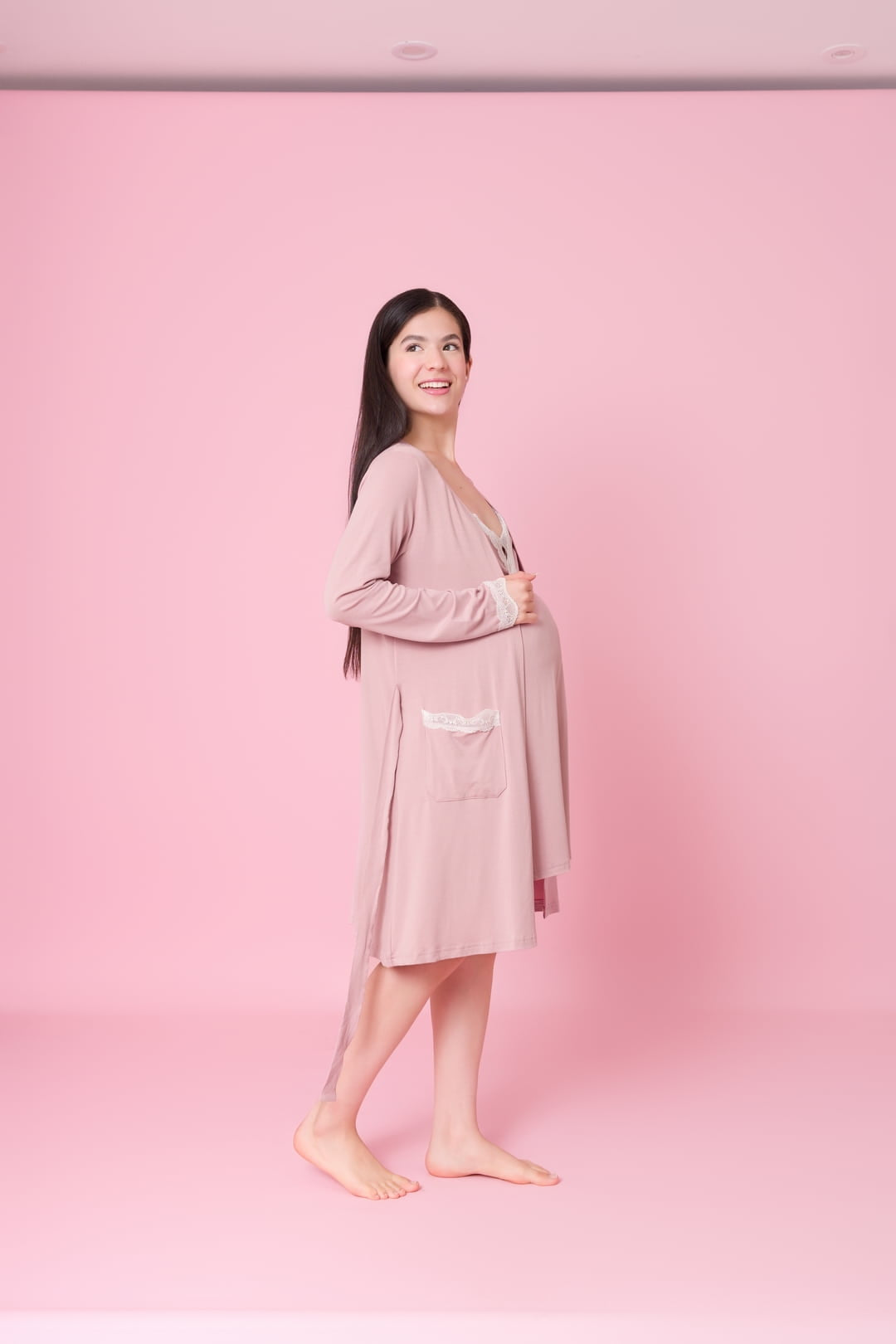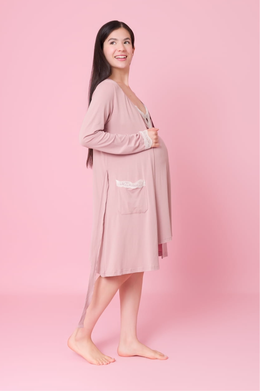 - 2 piezas ( capa + camisón con broches de lactancia )