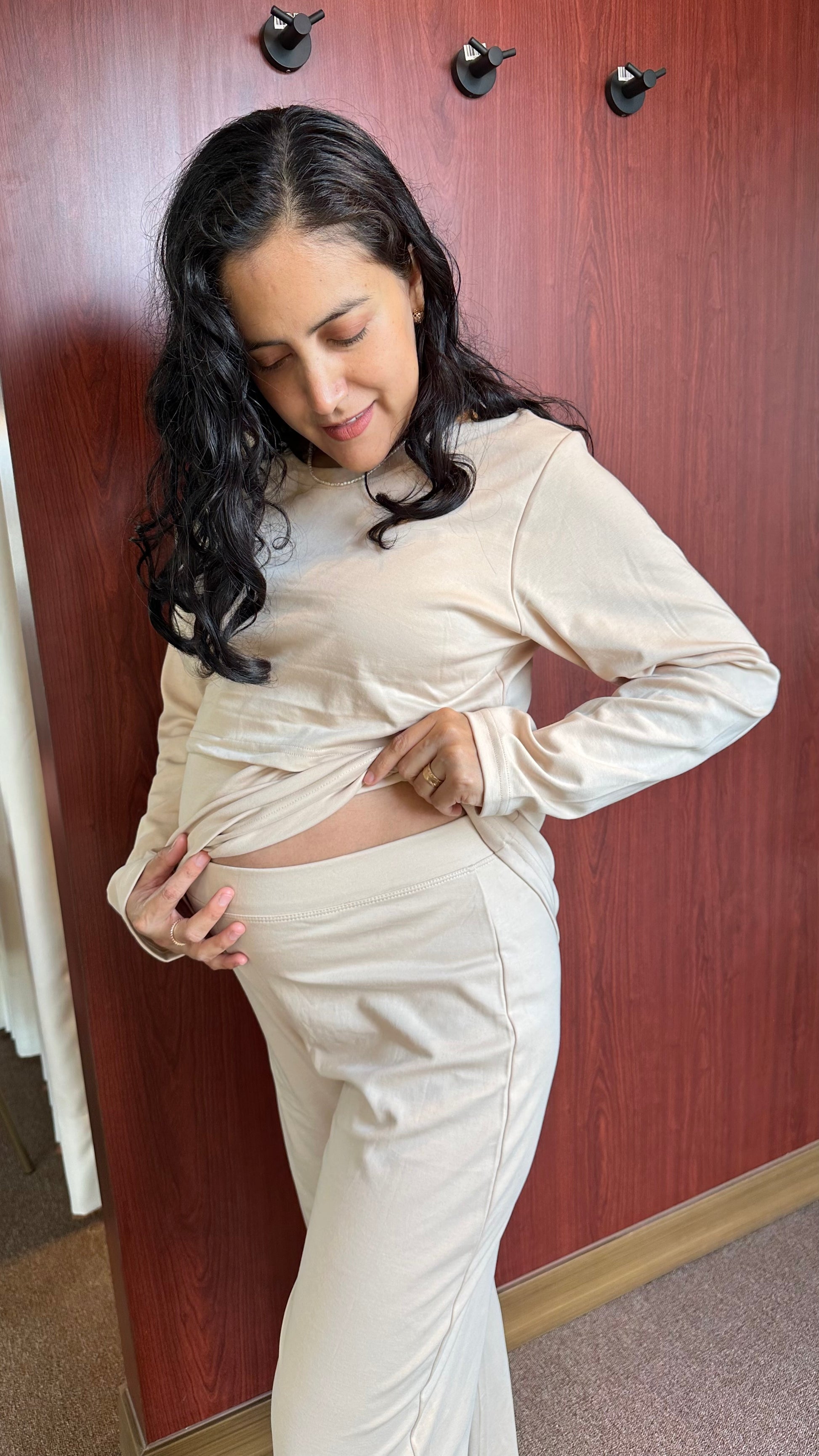 Pijama de ALGODÓN ORGÁNICO , 2 piezas . Elástico suave del pantalón para uso durante el embarazo y post parto.