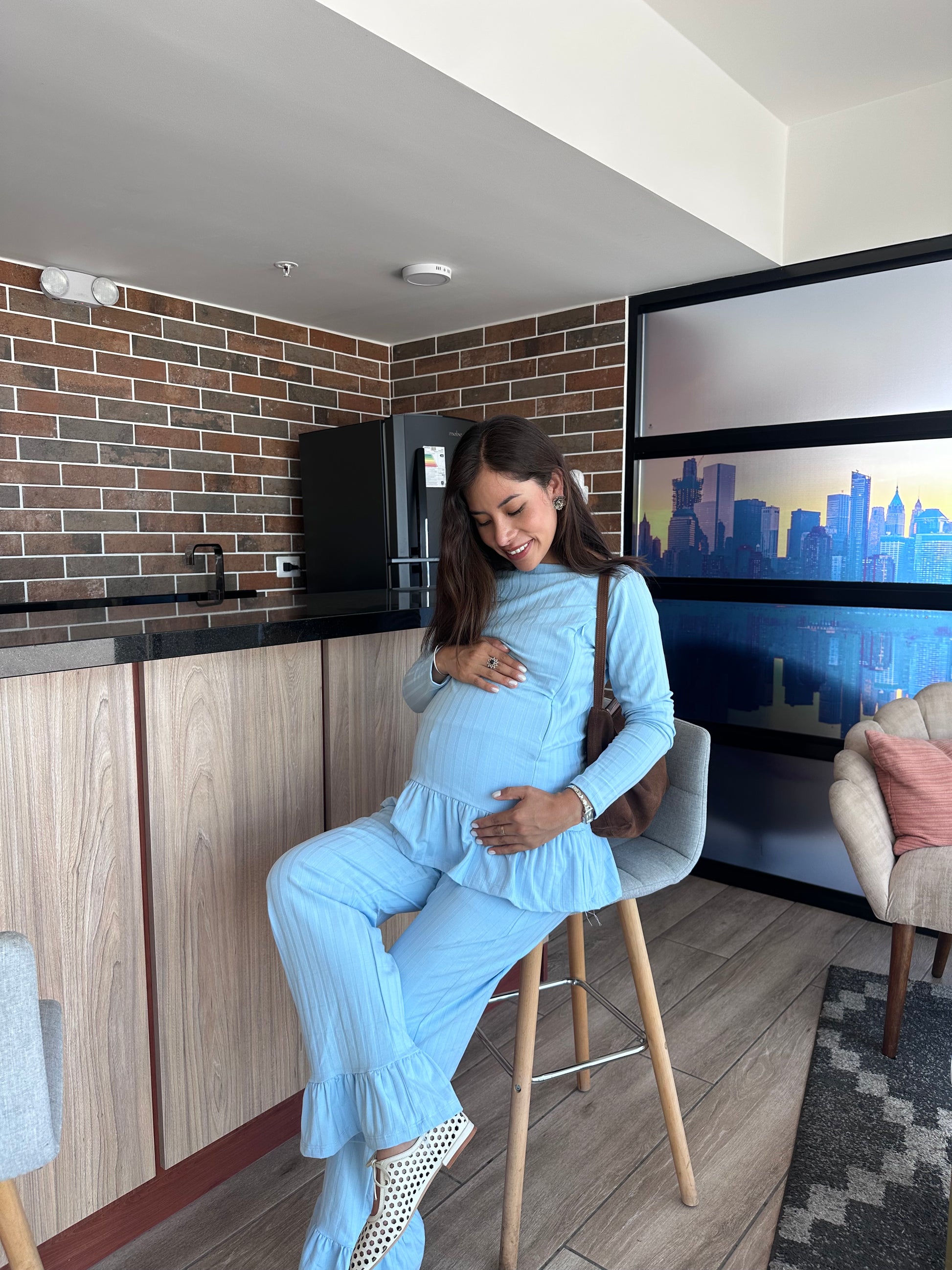 Salida de clínica en algodón rib . Aberturas de lactancia y pretina suave. Bolsillos en el pantalón.